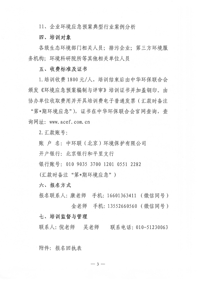 关于举办第18期环境应急预案编制与评审从业人员培训班的通知