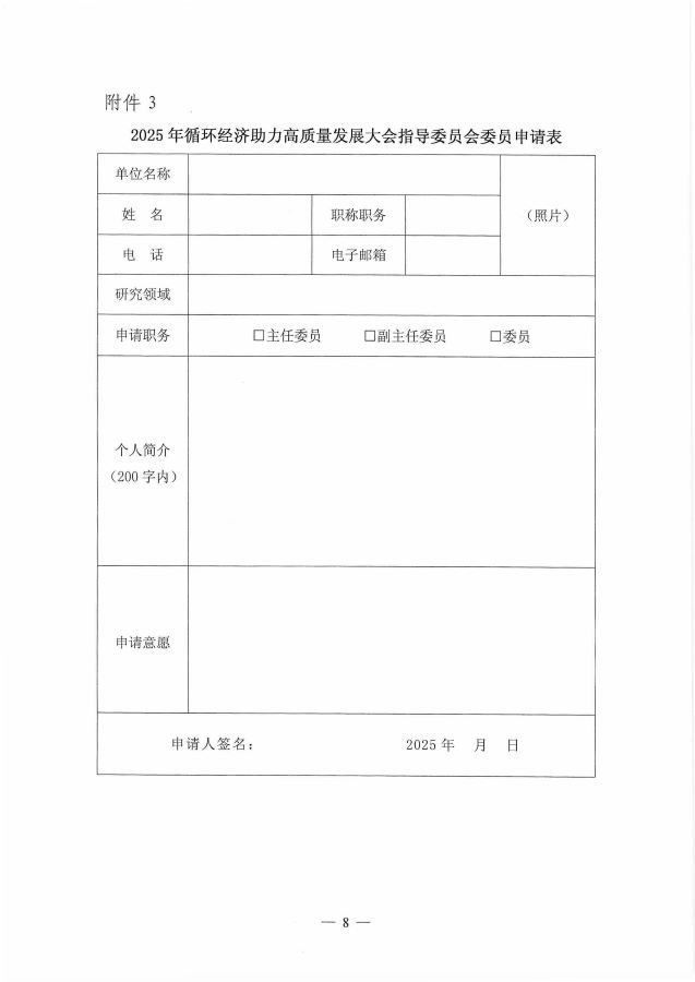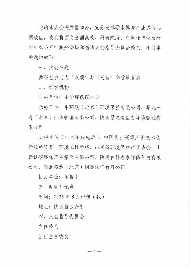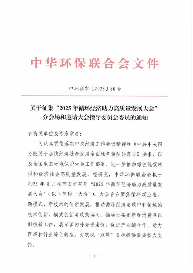 关于征集“2025年循环经济助力高质量发展大会”分会场和邀请大会指导委员会委员的通知